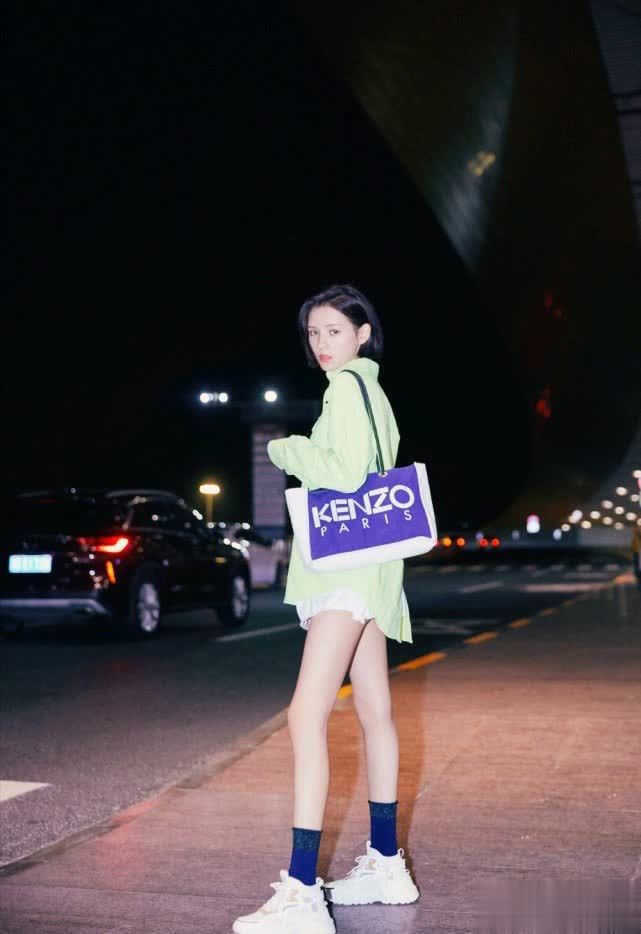 最后的这一身机场穿搭也是很吸引人的,一件绿色的衬衫属于宽松的版型,中长款的设计搭配一条白色的短裤,穿出了下衣失踪的效果,轻松展现白皙的大长腿。其实她这种下衣失踪的穿法,很适合在春夏季节,好看又个性,关键是可以秀出迷人双腿。