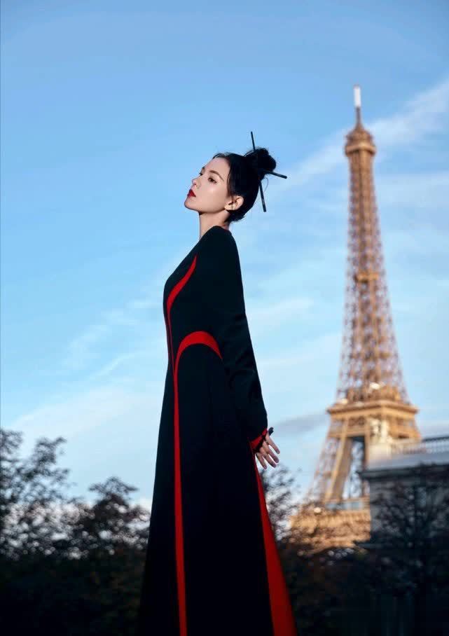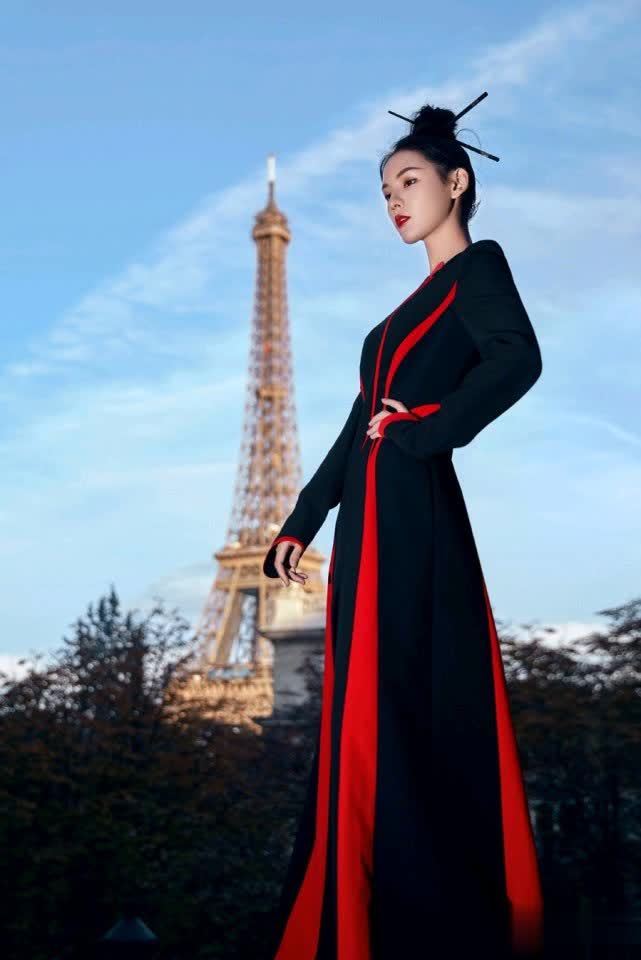 张予曦发型特别大气,扎起丸子头,而且还用筷子插在头发上,就好像一个女侠的发型,特别帅气。而且她的衣服也是比较古风的,这是一条黑色的长裙,与红色搭配在一起构成了经典的红黑配,简单又很好看。
