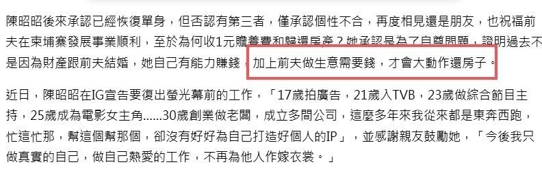 陈昭昭坦言,当时前夫生意陷入困境,急需资金周转。考虑到对方处境艰难,她决定主动放弃财产权益。