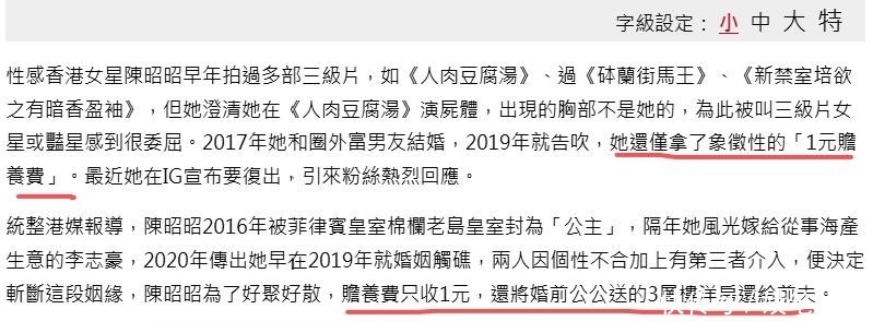 这一次打破常规的,正是曾以性感形象深入人心的香港女艺人陈昭昭。她不仅未索取巨额赔偿,反而仅提出象征性地领取1元作为“赡养费”,并坚定表示:“这是为了尊严!”